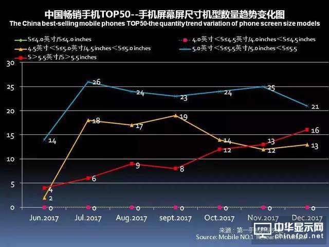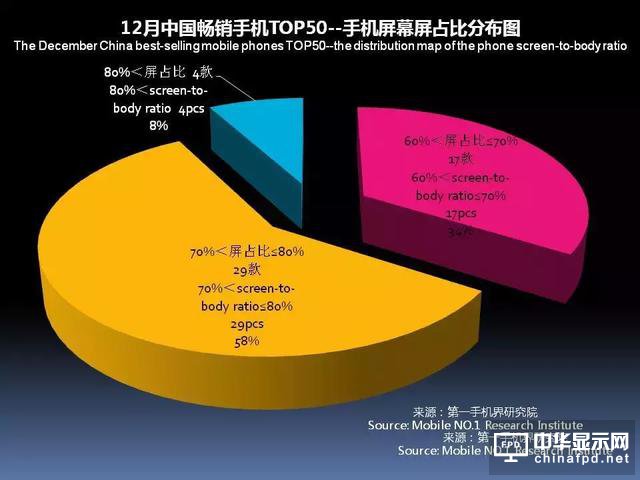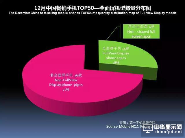 12月中國暢銷手機TOP 50中,采用AMOLED屏下降至8款,說明全面屏已開始取代AMOLED成為手機賣點。