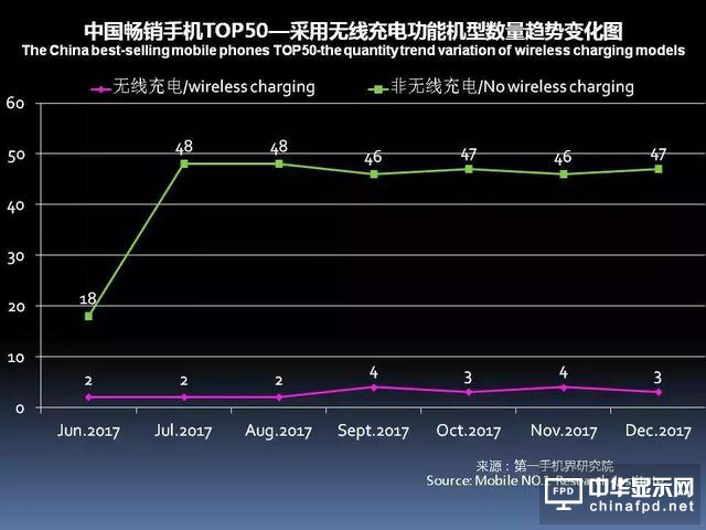 12月中國暢銷手機TOP 50中,采用無線充電的機型有3款,占比6%,就是iPhone X、iPhone8 Plus和三星 Galaxy S8+。
