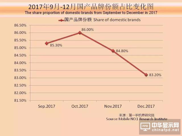 由于iPhone X銷量暫時可觀,加上三星在高端手機市場略有回暖拉動了國際品牌手機在中國市場上的占有率的上升,達到了16.8%。