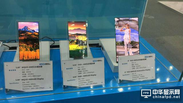 本次展會上,還重點展示了已經量產和即將量產的AMOLED柔性屏,其中,現場還展示一款即將量產的全視曲面屏,它代表著和輝光電的又一次量產技術升級。