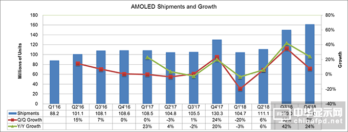 去年以來,國內全面屏市場徹底爆發,國內外手機品牌紛紛推出旗下全面屏新機,市場滲透率將不斷提升生。而AMOLED屏幕以可視角度大、對比度高、響應速度快、抗震性能好等特點著稱,特別是柔性AMOLED又有多項特性和全面屏完美契合,從而成為備受各大手機廠商爭相追捧的焦點的青睞。
