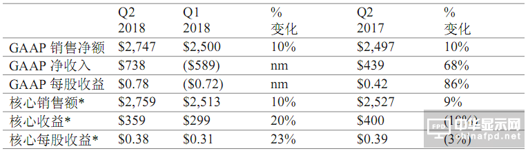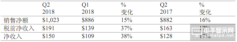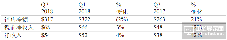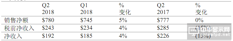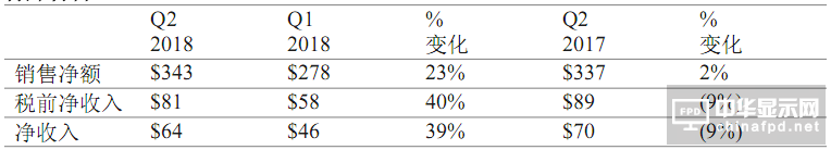 顯示科技業務第二季度銷售凈額為7.8億美元,環比和同比均實現增長。第二季度的價格環境為十幾年來最佳。