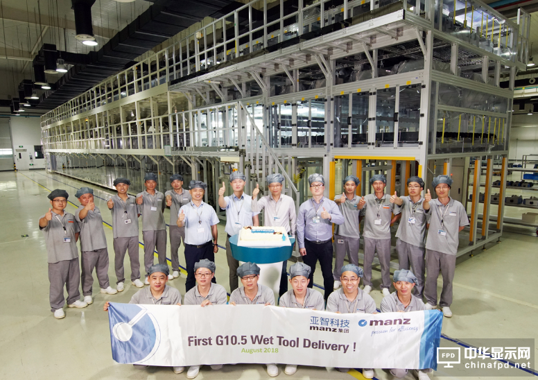 Manz 亞智科技30多年來致力于濕制程技術研究,總設備銷售實績超過7,500臺。2018年8月7日, Manz亞智科技宣布成功研發(fā)并銷售第一臺10.5代面板濕制程設備,現(xiàn)已出貨至客戶方進行安裝調試。胡春明副秘書長表示:“此次Manz亞智科技10.5代濕制程設備的成功交付,是我國顯示企業(yè)實現(xiàn)開放合作、產業(yè)鏈協(xié)同創(chuàng)新的典型范例,推進了我國顯示裝備本地化配套的進程,為增強我國顯示企業(yè)的行業(yè)競爭力添磚加瓦。”