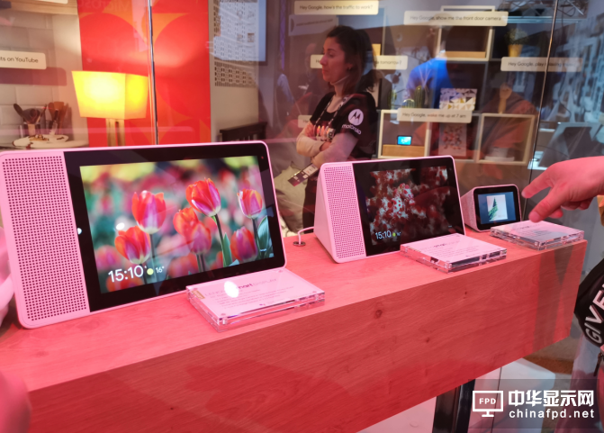 圖:聯(lián)想與谷歌合并展覽的三款智能音箱設(shè)備