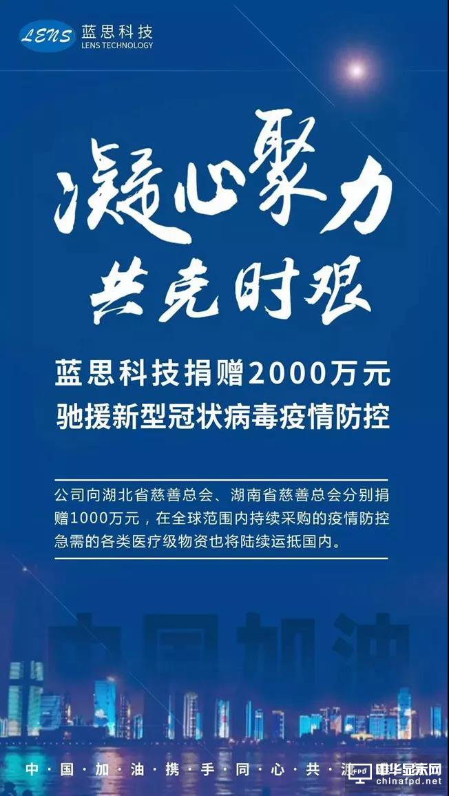自湖北省武漢市發生新型冠狀病毒疫情以來,藍思科技高度關注疫情變化,為切實履行上市公司社會責任、回饋社會,公司決定捐贈2,000萬元人民幣馳援湖北省、湖南省抗擊疫情,其中分別向湖北省慈善總會、湖南省慈善總會各捐贈1,000萬元人民幣,用于兩省疫情定點收治醫院購置急缺的醫療物資,以及一線醫護人員關懷。同時,公司在全球范圍內持續采購的疫情防控急需的各類醫療級物資也將陸續運抵國內,繼續支援疫情抗擊前線。此次捐贈款項2,000萬元人民幣已于2020年2月3日完成了支付。