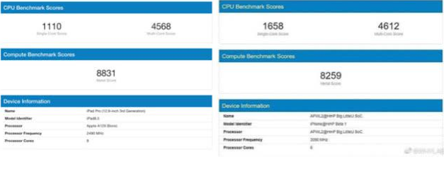 蘋果過去銷售的12.9英寸平板電腦iPad Pro植入了一個A12X處理器,它有8個內核,單核的性能得分為1110,多核的性能得分為4568。根據測評顯示,A14應用處理器的得分超過了這款平板電腦的處理器。