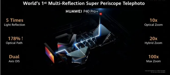 而華為 P40 Pro+則采用了100倍雙目變焦鏡頭,等效焦距240mm支持10倍光學(xué)變焦以及最高100倍的數(shù)字變焦,并且支持OIS+AIS雙重防抖。另外,華為 P40 Pro+還加入一顆用于中距變焦的3倍長焦鏡頭,同樣支持OIS光學(xué)防抖。