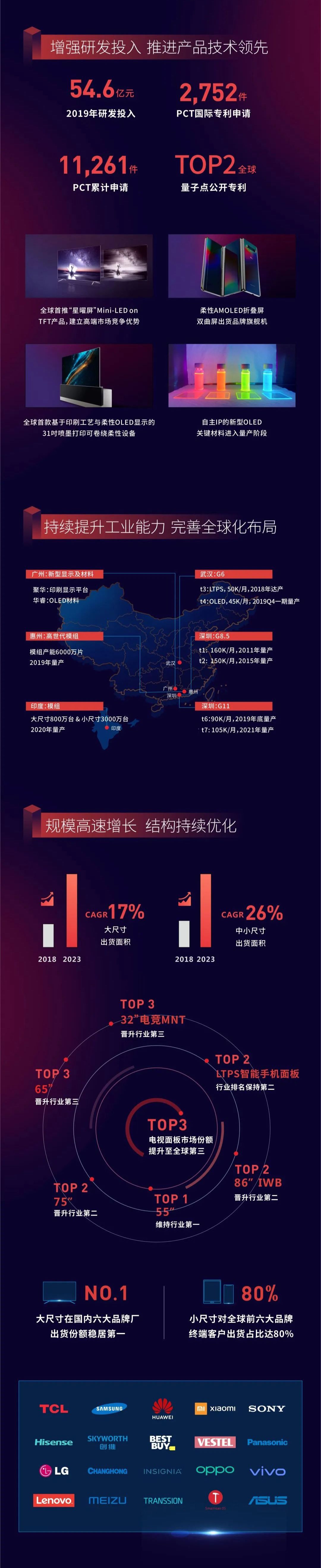 報告期內,公司研發技術人員 6,155 名,研發投入 54.6 億元,提交 PCT 國際專利申請2,752 件,累計申請 11,261 件,量子點公開專利全球第二。公司召開首屆技術合作開放大會,聘請 29 位業界權威為技術顧問,面向全球發布 13 個前沿技術合作項目,通過“自研+合作”的開放式創新,加快核心基礎技術的突破和重大科技成果轉化。