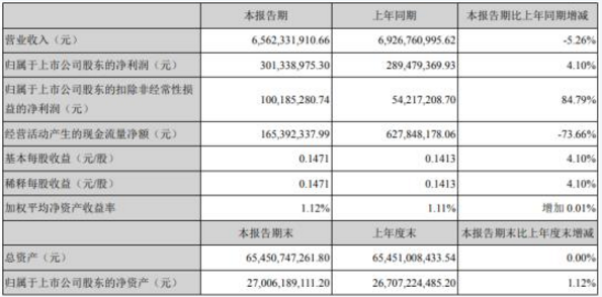 截至本報告期末,深天馬A歸屬于上市公司股東的凈資產27,006,189,111.20元,較上年末增長1.12%;經營活動產生的現金流量凈額為165,392,337.99元,上年同期為627,848,178.06元。