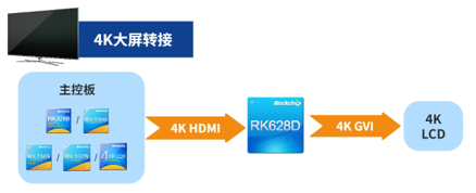 橋接方式:4K HDMI IN--> 4K GVI OUT,兼容電視GVI屏幕、商顯GVI長條屏