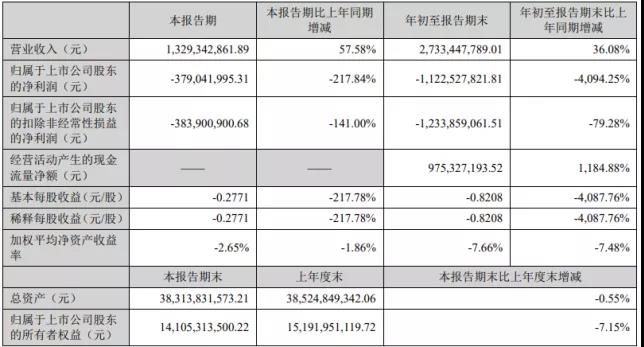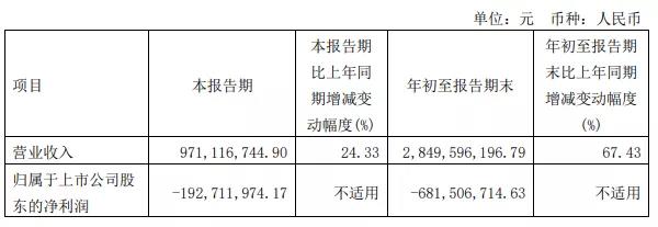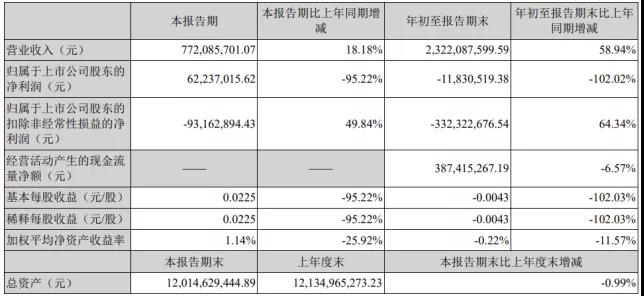 公司前三季度實現營業收入23.22億元,同比增長58.94%,凈虧損1183.05萬元,同比止盈轉虧,去年同期凈利5.86億元。
