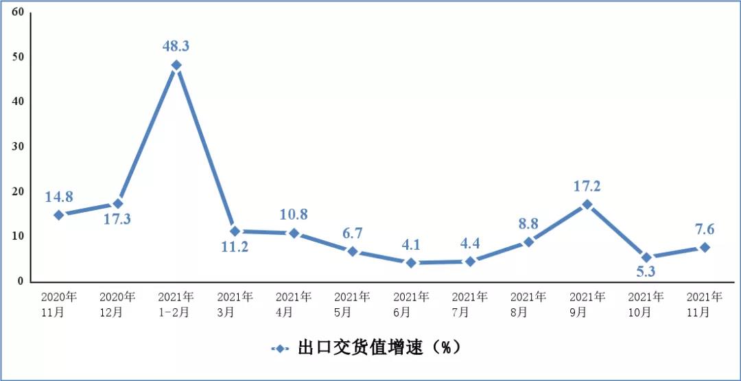 11月份,規(guī)模以上電子信息制造業(yè)實(shí)現(xiàn)出口交貨值同比增長7.6%,增速比上月回升2.3個(gè)百分點(diǎn)。1—11月份,規(guī)模以上電子信息制造業(yè)累計(jì)實(shí)現(xiàn)出口交貨值同比增長12.6%