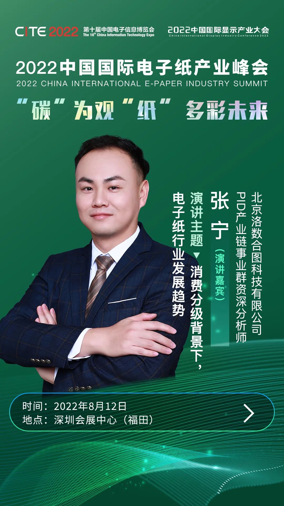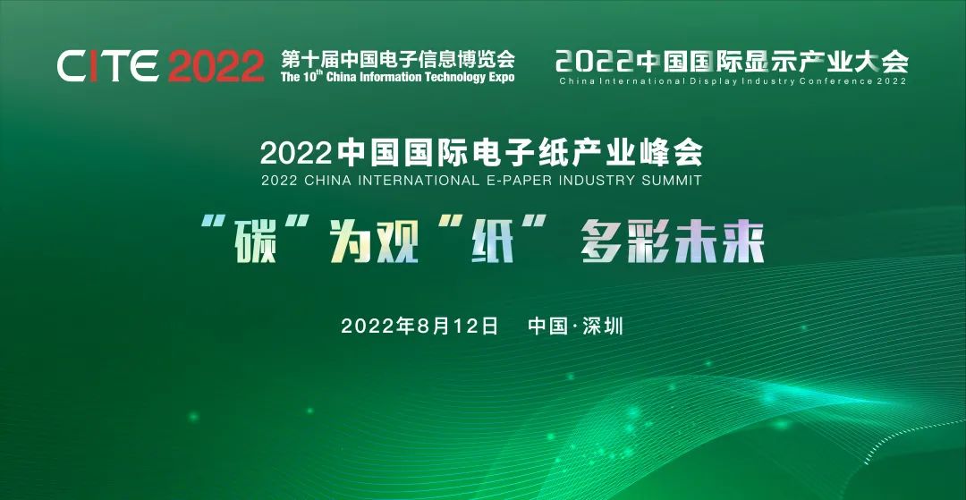 作為第十屆中國電子信息博覽會(CITE2022)同期論壇活動——2022中國國際顯示產業大會的系列活動之一,以“‘碳’為觀‘紙’ 多彩未來”為主題的2022中國國際電子紙產業峰會將于8月12日在深圳舉行。大會已邀請到華為、元太科技、廣州奧翼、大我云讀寫、萊寶高科、東方科脈、全志科技、京東方、鑫柔科技、精創裝備等名企,以及華南師范大學、洛圖科技等專業院校、研究咨詢機構,從顯示技術、行業發展、應用場景等方面做主題分享,共同為電子紙產業健康發展集思廣益。