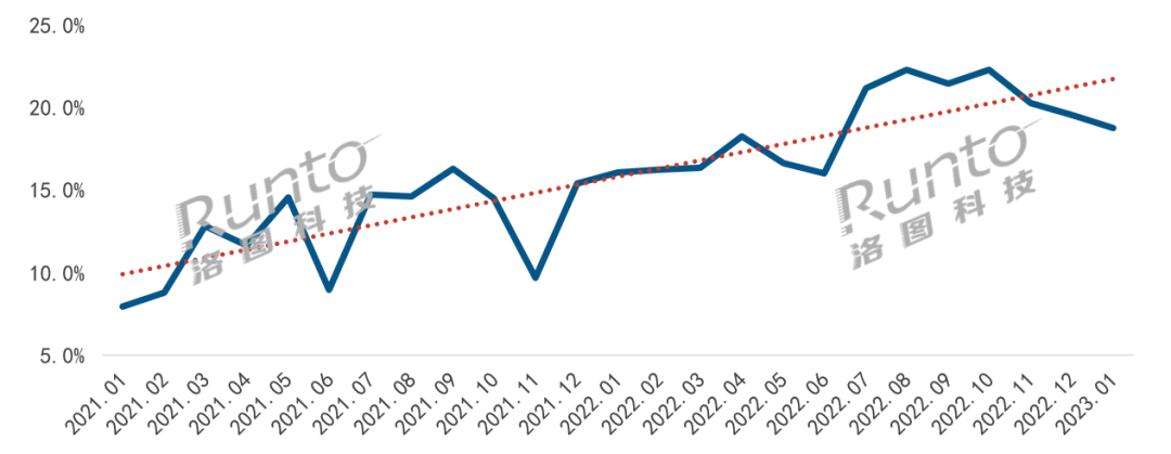 數據來源:洛圖科技(RUNTO)線上數據,單位:%