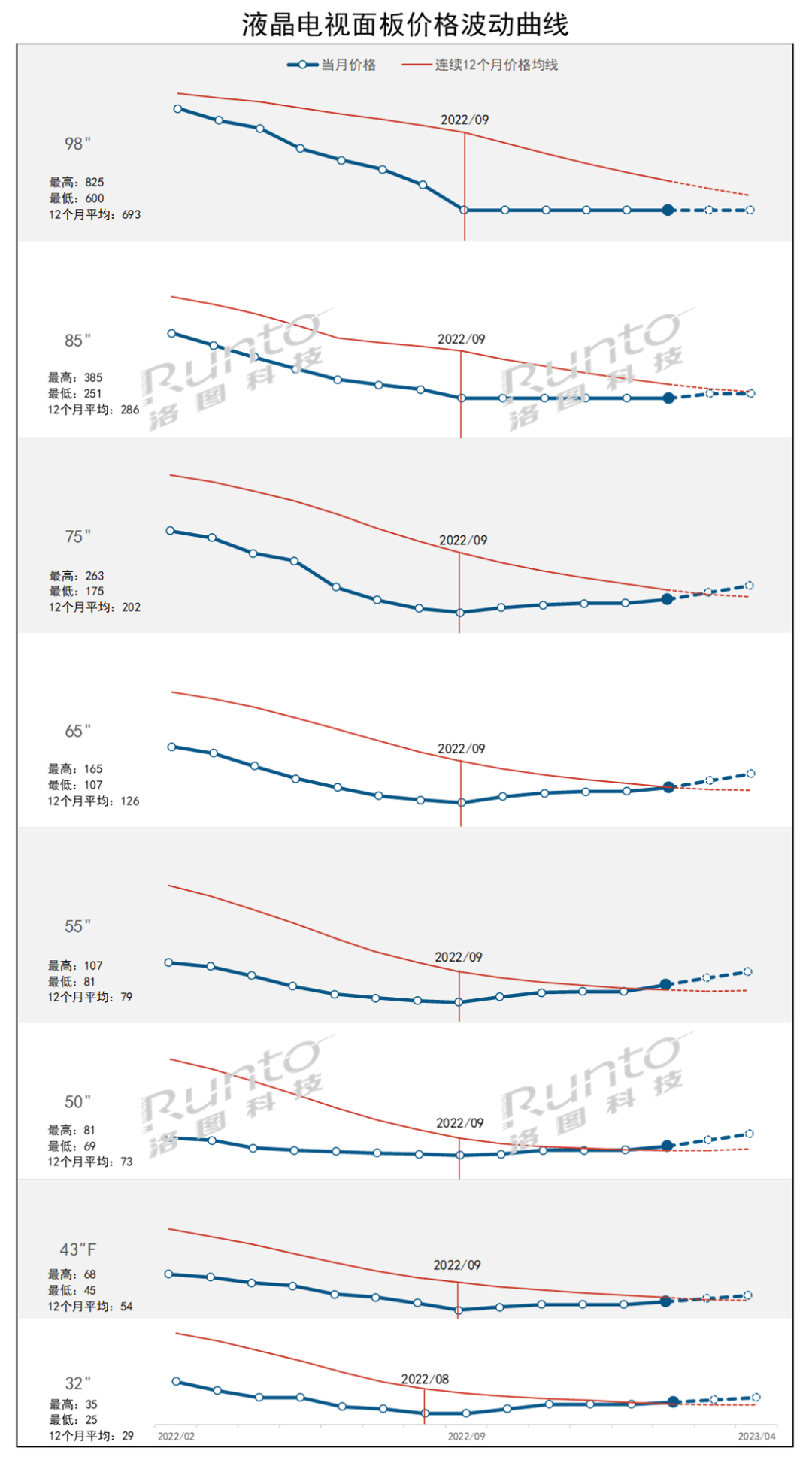 2023年3月液晶電視面板價格趨勢