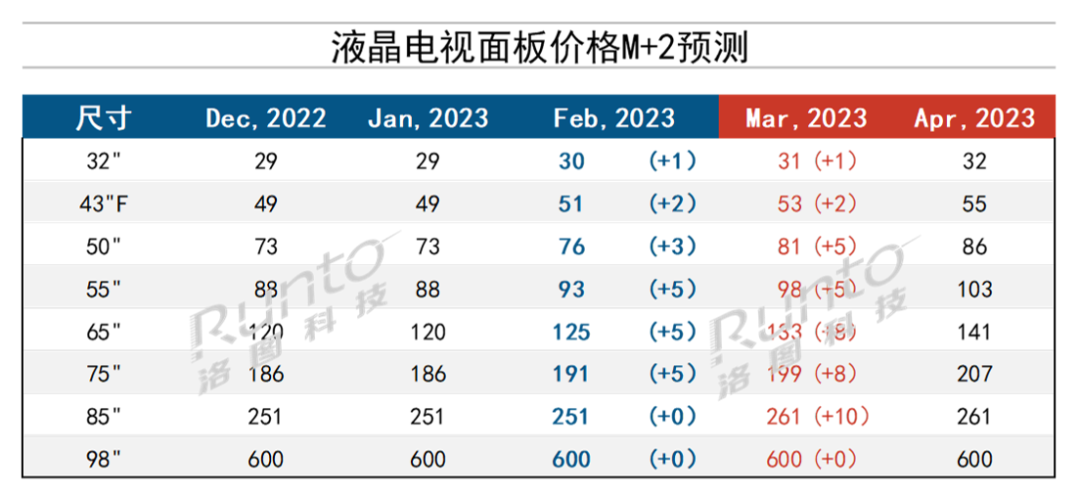 --43寸FHD:2月上漲2美元到51美元;預計3月將保持相同漲幅,同時不排除擴大至3美元。