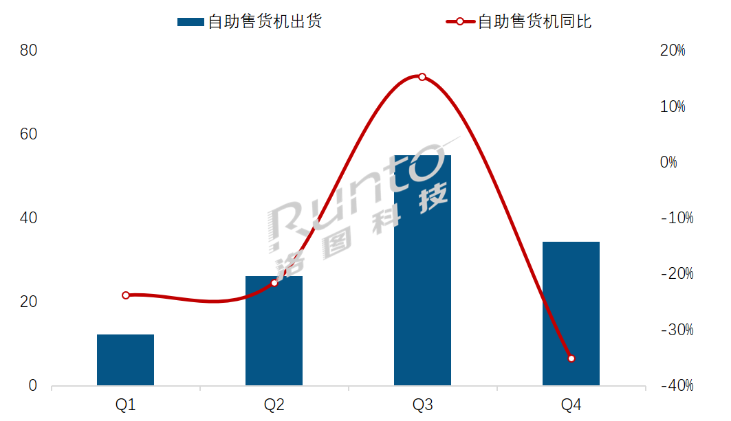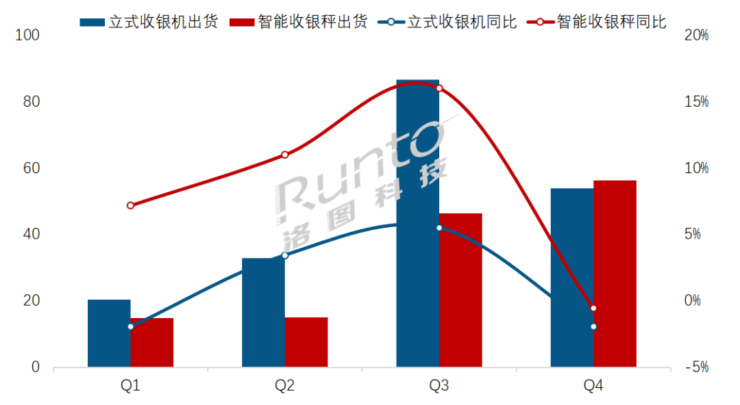 2022年,自助收銀機出貨量32.7萬臺,與2021年同比增長4.1%,僅在第四季度的市場表現(xiàn)有所下滑。