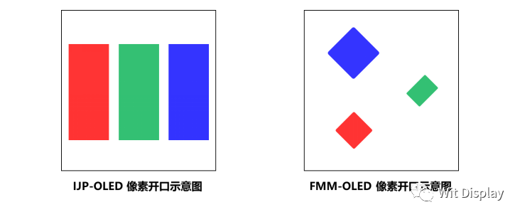 印刷OLED則無掩膜板限制,可實現更高開口率。因此,針對于像素密度較高的OLED產品而言,印刷OLED技術可實現更高像素開口率,且像素密度越高,像素開口率優勢越明顯。正如前文所講,開口率越高,在顯示相同亮度的條件下,像素OLED器件發光工作時對應的電流密度越小,器件衰減越慢,所生產出來的產品也就有望實現更長的壽命。