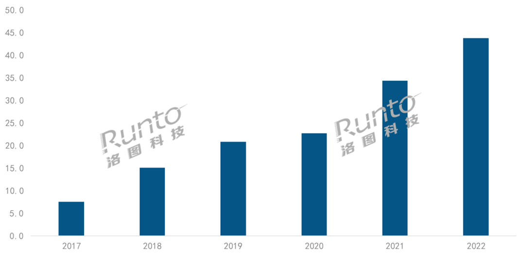 根據洛圖科技(RUNTO)數據,2022年全球激光投影出貨量突破145萬臺,同比增長24%;中國大陸出貨量接近70萬臺,占據全球近一半的市場份額。