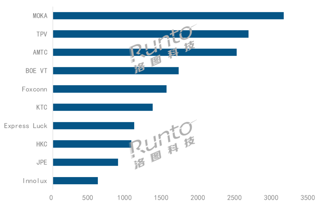 統(tǒng)計(jì)范圍內(nèi),前十家專業(yè)ODM代工廠(不含四家品牌自有工廠),市場(chǎng)份額占整體代工市場(chǎng)的75%,聚集效應(yīng)明顯。其中,擁有核心面板資源的三大工廠MOKA(茂佳)、BOE VT(視訊)和HKC(惠科)在2022年全年增長(zhǎng)的基礎(chǔ)上,今年第一季度仍然表現(xiàn)出強(qiáng)勁的增長(zhǎng)動(dòng)力,在僅有的四家增長(zhǎng)工廠中占據(jù)三個(gè)席位。