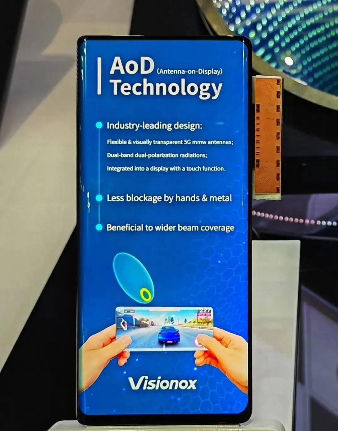 如今,終端產(chǎn)品整機(jī)厚度越來(lái)越薄,這就需要屏幕集成更多的功能。維信諾3D屏下攝像綜合解決方案,通過全新無(wú)過渡區(qū)“零渡”方案,讓主副屏一致性更優(yōu),在不增加成本的前提下,能大幅改善低灰階下Mura。此外,維信諾還展示了集成光學(xué)指紋技術(shù)、雙頻雙極化5G毫米波屏上天線等集成解決方案。