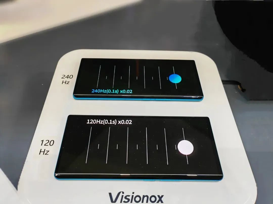 在技術(shù)創(chuàng)新展區(qū),維信諾全球首發(fā)AMOLED手機(jī)屏幕240Hz+高刷新率技術(shù),并成功點(diǎn)亮265Hz屏體,配備更高階的IC,將實(shí)現(xiàn)超過300Hz的超高刷新率,維信諾在AMOLED手機(jī)屏幕高刷新率技術(shù)上再一次全球領(lǐng)先。
