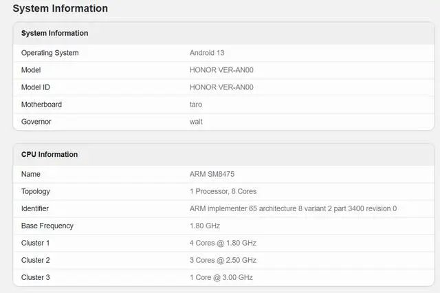 從該網站還可以看到,這款新機搭載驍龍 8 + 處理器降頻版,CPU 由 1 個 3.00 GHz 核心 + 3 個 2.50 GHz 核心 + 4 個 1.80 GHz 核心組成。作為對比,驍龍 8 + 處理器 CPU 由 1 個 3.2GHz 核心 + 3 個 2.75GHz 核心 + 4 個 2.0GHz 核心組成。