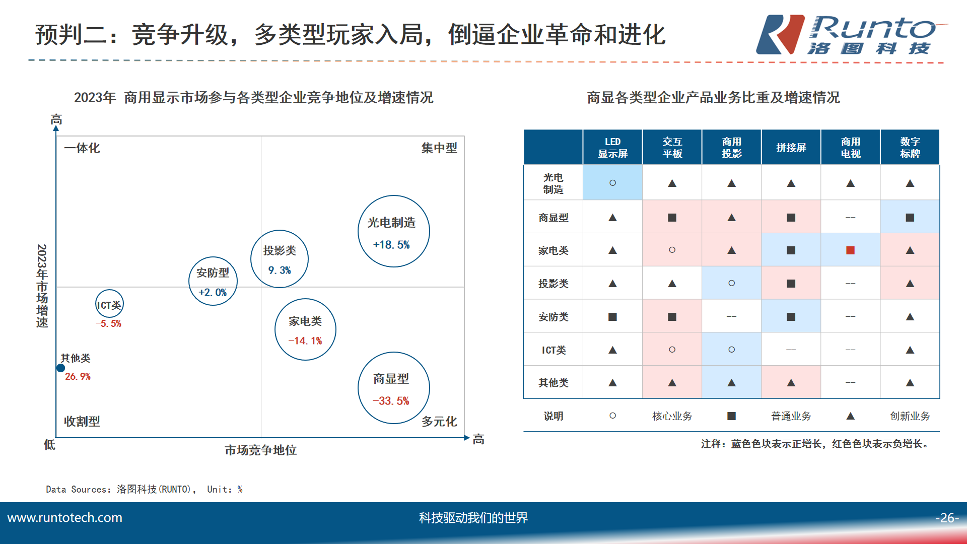 一、突破政策高度依賴性,向市場化方向轉變。二、競爭升級,多類型玩家入局,倒逼企業革命和進化。三、新商用顯示趨向集成化。四、專業顯示從樣品到成品化階段發展。