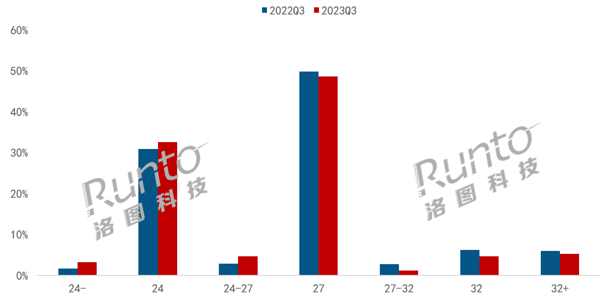 2023Q3 中國電競顯示器線上市場尺寸段銷量結構