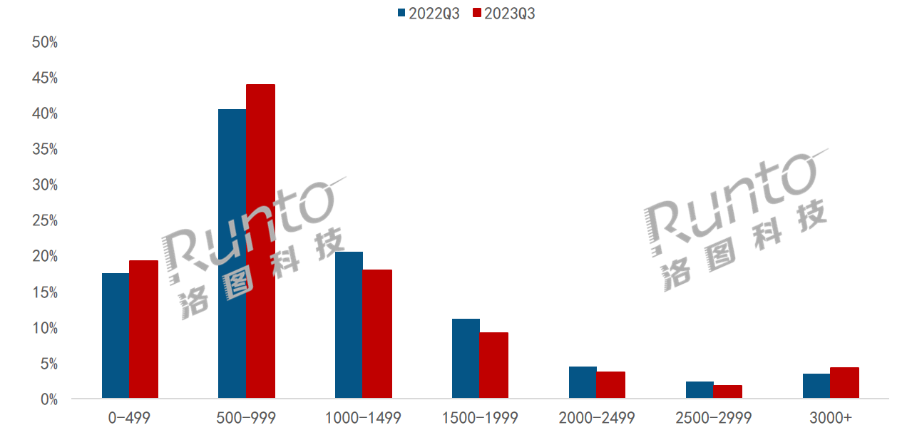 2023Q3 中國顯示器線上市場價格段銷量結構