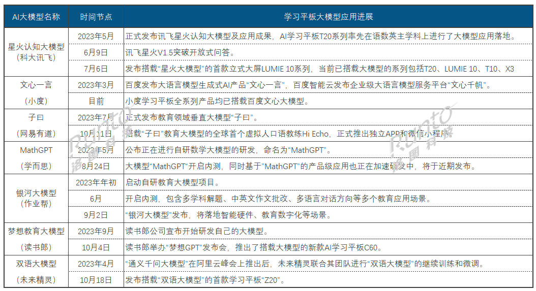 根據洛圖科技(RUNTO)統計,科大訊飛、小度、網易有道、學而思、作業幫、讀書郎、未來精靈等品牌均已發布相關AI大模型,并逐漸應用于硬件產品。