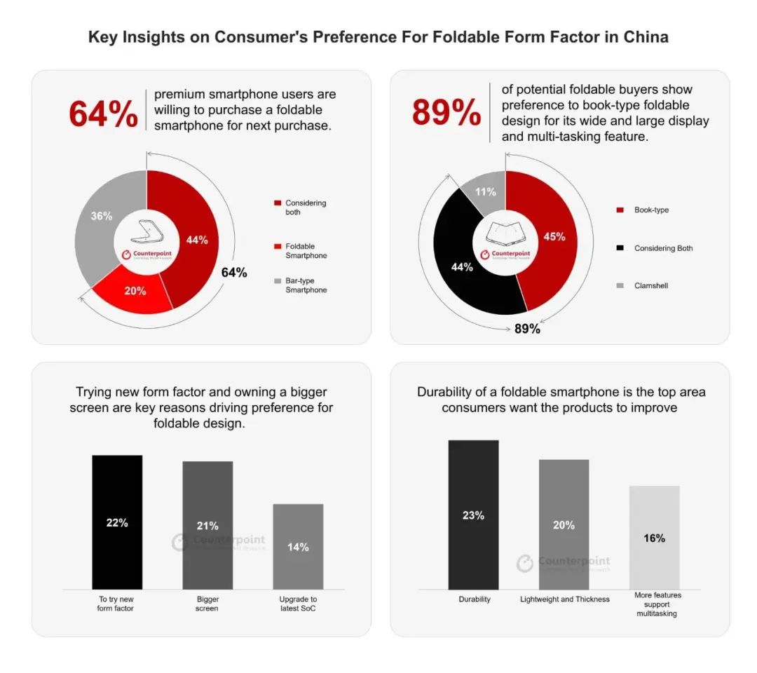 日前,市場(chǎng)調(diào)查機(jī)構(gòu)Counterpoint Research公布了一份有關(guān)中國(guó)大陸消費(fèi)者對(duì)于折疊屏手機(jī)看法的報(bào)告。