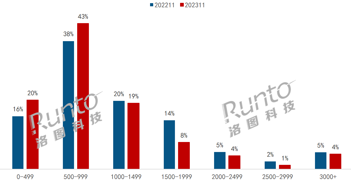 2023年11月 中國顯示器線上市場分價格段銷量結構