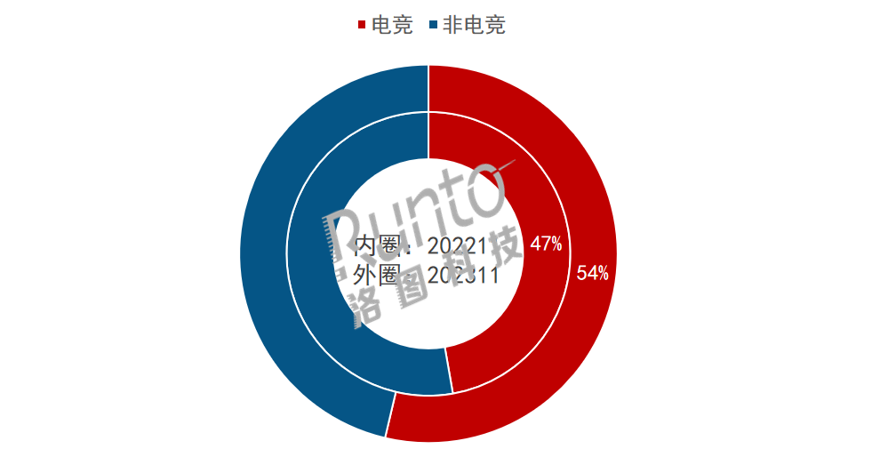 數據來源:洛圖科技(RUNTO)線上監測數據,單位:%產品:電競銷量占比達54%,增長7個百分點