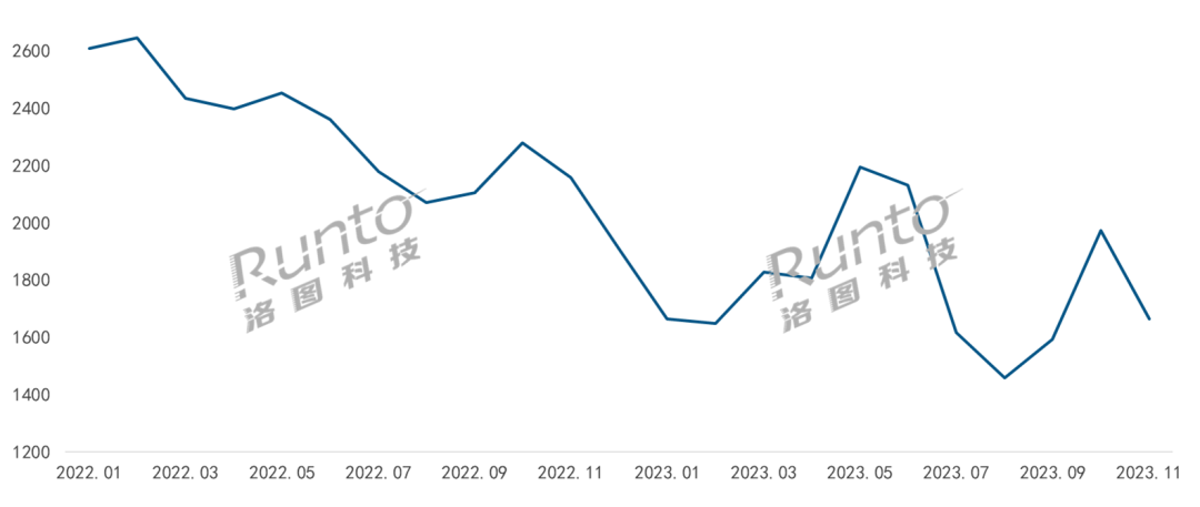 一方面,人臉識別智能鎖具有識別速度較快、安全性高、可靠性強(qiáng)、唯一性等優(yōu)勢,受到消費(fèi)者認(rèn)可;另一方面,原材料成本快速下降,其中3D結(jié)構(gòu)光的模組成本降幅接近50%。成本下降和市場競爭共同推動了人臉識別智能鎖均價(jià)深度下探。根據(jù)洛圖科技(RUNTO)線上監(jiān)測數(shù)據(jù)顯示,人臉識別智能鎖的均價(jià)從2022年1月的2610元降至了2023年11月的1664元。此外,1500元以下的市場實(shí)現(xiàn)了高速增長,銷量同比上漲超260%;千元以下的人臉識別鎖已占據(jù)產(chǎn)品暢銷榜的重要位置。