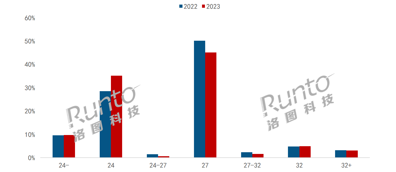 尺寸:27寸占比為45%;受到24寸的向上擠壓