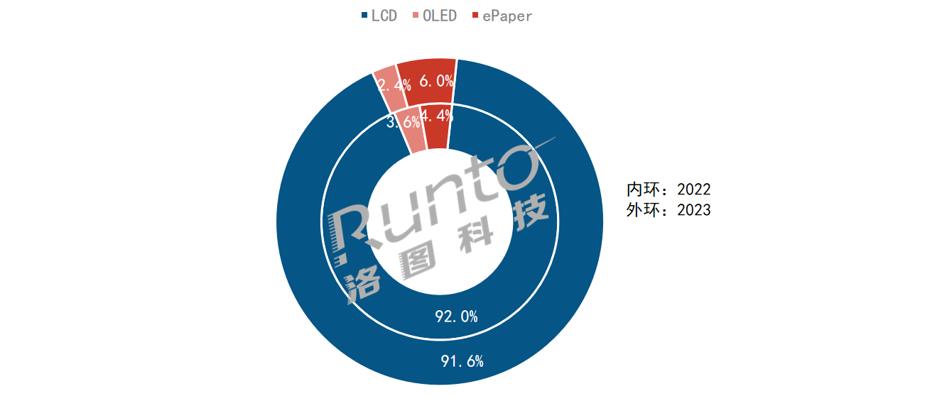 2023年 中國智能平板線上市場屏幕技術銷量結構