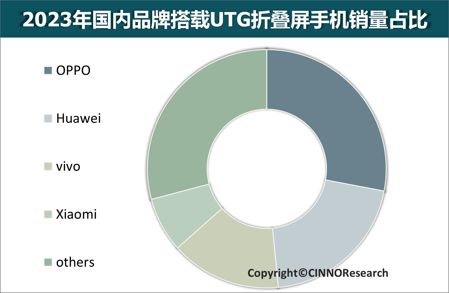 圖示:2023年國內品牌搭載UTG折疊屏智能手機銷量占比來源: CINNO Research月度中國智能手機市場發展趨勢分析報告