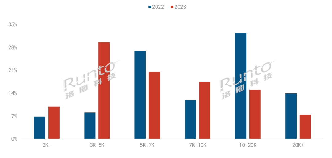 3000-5000元價格段反超了此前中長焦主導的5000-7000元價格段和超短焦主導的1-2萬元價格段,成為最有競爭力的區間。2023年,3000-5000元價格段出貨量份額接近3成,較2022年提升22個百分點。一方面,國內頭部品牌堅果、當貝、Vidda積極補充該價格段產品線;另一方面,3LCD技術的代表品牌愛普生加入3000+元價位段競爭陣營,其新品EF-15的終端零售價較其上一代產品下降40%。
