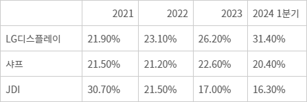 自2022年第二季度以來,LG顯示連續七個季度保持第一,擊敗日本企業JDI和夏普。預計今年第一季度為31.4%,與夏普和JDI的差距將進一步拉大。