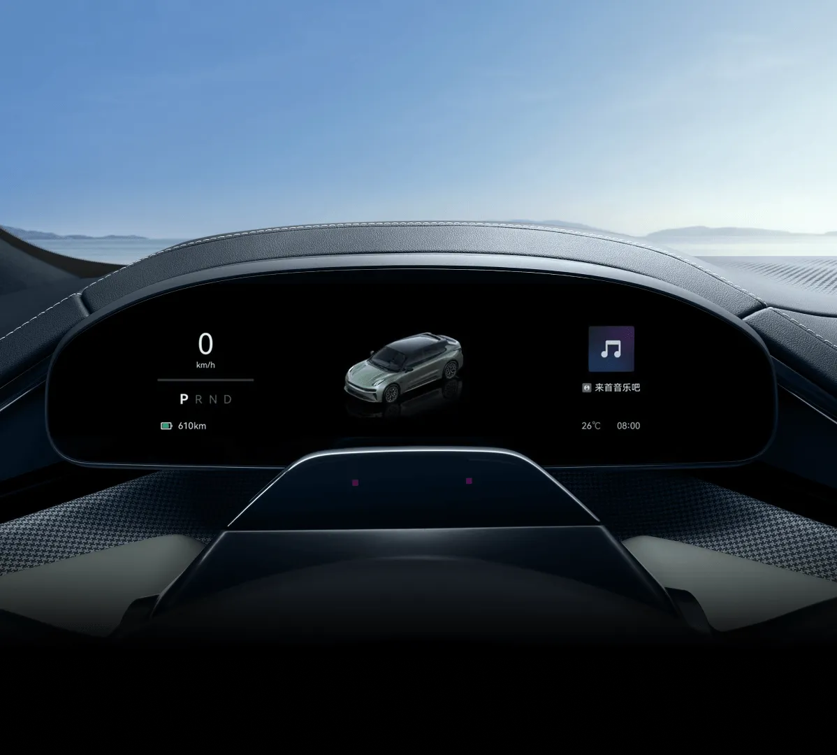 該車型的 13.02 英寸半月牙式儀表屏同樣由京東方供應,采用異形切割,“更具運動氛圍”,界面信息三區布局。