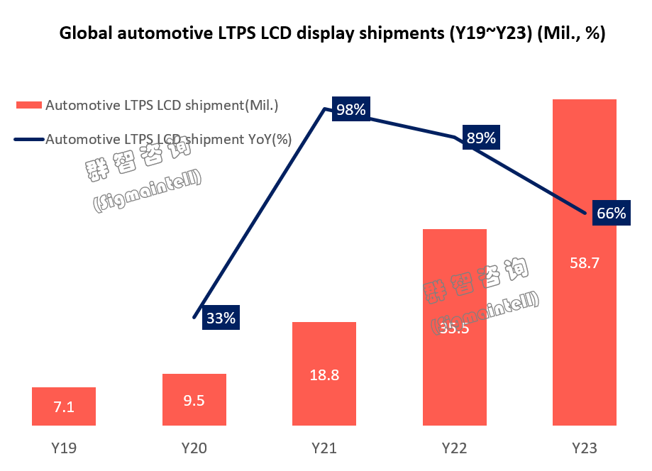 LTPS LCD車載顯示面板出貨量達到約5870萬片,同比增長66%,占車載顯示出貨總量的28%