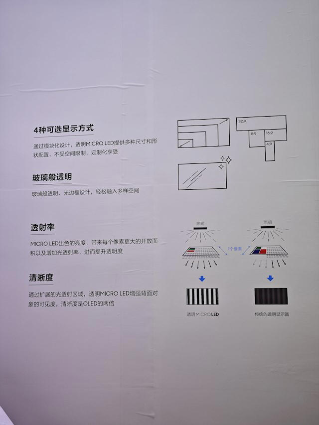 在開機后,由于透明MicroLED屏幕相比透明OLED屏具有更高的亮度,因此受環境光的影響也較小,清晰度也提升到了OLED的兩倍,同時還具備更大的可視角度。