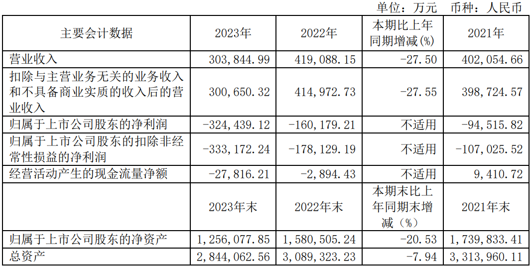 3月30日晚間,和輝光電發布2023年年度報告,報告期內公司實現營業收入近30.4億元,同比下滑27.50%;歸屬于上市公司股東的凈利潤-32.4億元,較上年同期虧損增加。