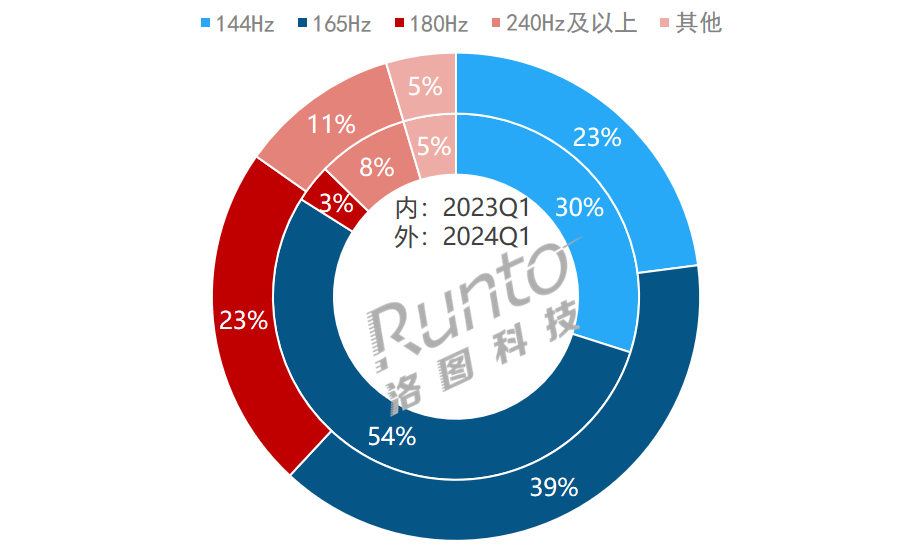 2024Q1 中國電競顯示器線上市場刷新率銷量結(jié)構(gòu)