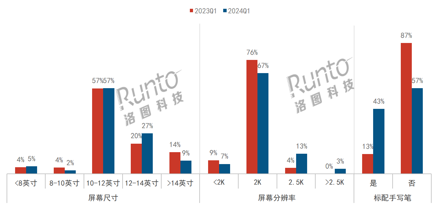 2024年Q1 中國(guó)學(xué)習(xí)平板線上市場(chǎng)產(chǎn)品特點(diǎn)變化