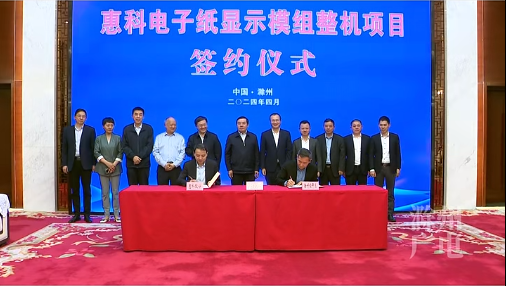 4月25日,滁州經開區與惠科股份有限公司舉行惠科電子紙顯示模組整機項目簽約儀式。