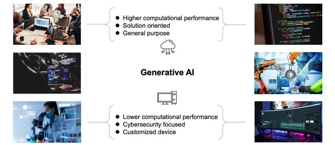 最初完全依賴云端的計(jì)算生成式AI的應(yīng)用,需要更高的計(jì)算能力和性能,從訓(xùn)練模型到每秒推理數(shù)百萬(wàn)個(gè)潛在請(qǐng)求。然而,這在容量、成本和能源方面既不可行也不可持續(xù)。因此,邊緣或PC中的GenAI功能變得至關(guān)重要。