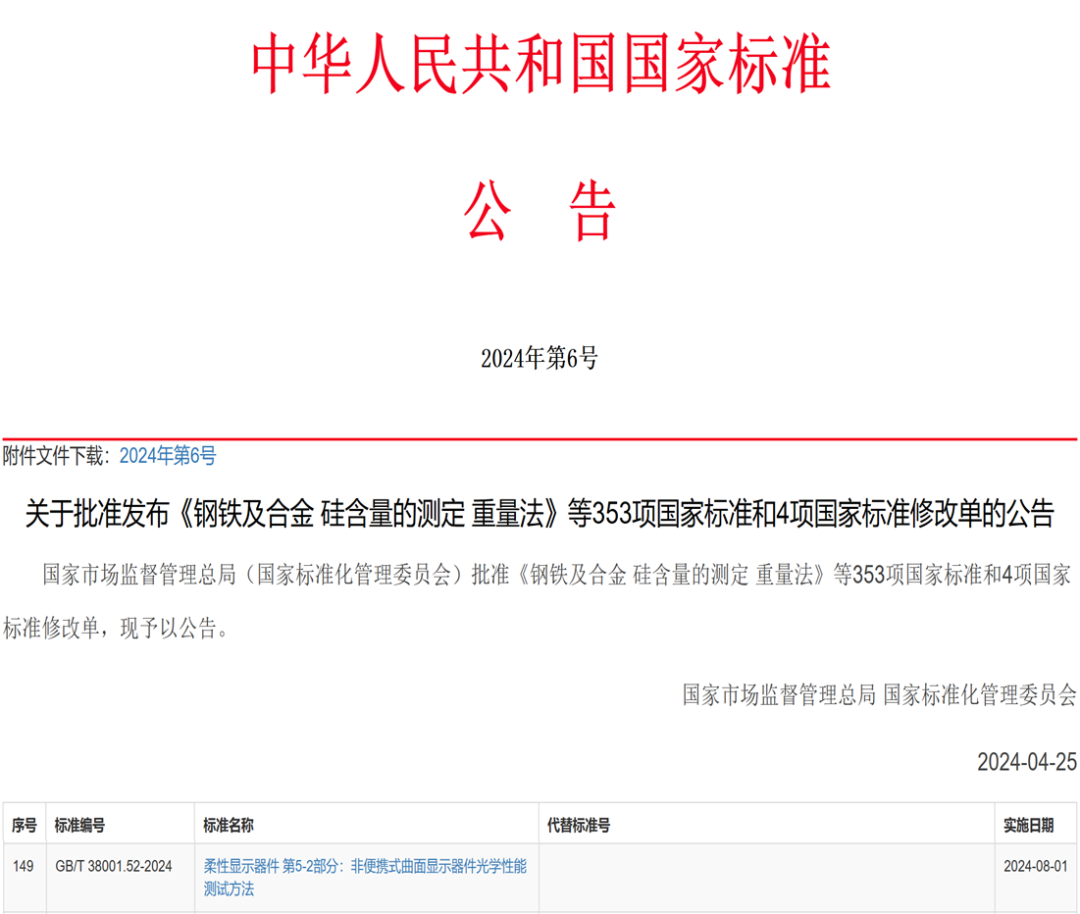 近日,由TCL華星牽頭制定的國家標(biāo)準(zhǔn)《柔性顯示器件 第5-2部分:非便攜式曲面顯示器件光學(xué)性能測試方法》(GB/T 38001.52-2024)正式發(fā)布。該標(biāo)準(zhǔn)的發(fā)布,不僅彰顯了TCL華星在曲面顯示技術(shù)的領(lǐng)先地位,更為電競顯示器市場的規(guī)范化、高品質(zhì)發(fā)展奠定了堅實基礎(chǔ),標(biāo)志著我國在高端顯示技術(shù)領(lǐng)域邁出重要一步。