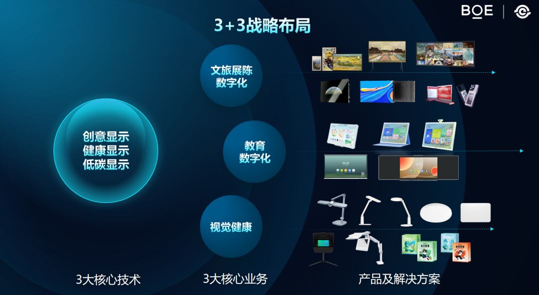 作為京東方科技集團股份有限公司旗下子公司,京東方藝云科技有限公司是京東方向物聯網轉型的先行先試企業,成立于2017年,構建了以創意顯示、健康顯示、低碳顯示為核心技術,文旅展陳數字化、教育數字化、視覺健康為核心業務的“3+3”企業戰略布局,推出畫屏、小課屏、拾光紀、類紙護眼智慧黑板、類紙護眼教育一體機、智慧桌牌等多系列創新顯示終端與軟件產品。2023年,京東方藝云入選首批文化和旅游部技術創新中心單位。